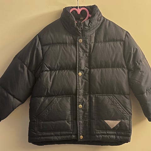 Myydään käytetty Mini nümph-merkkinen untuva/höyhen vuorinen talvitakki. Satiinivuori hihoissa ja helmassa, fleecevuori keskivartalolla. Lumilukko ja hihansuissa resorit. Käytetty parempana kauppa- ja kylätakkina. Koko merkintää en löytänyt, mutta tätä on käytetty samaan aikaan koon 122/128 kanssa. Pinta ei ole ihan noin kiiltävä, mitä kuvissa näyttää.