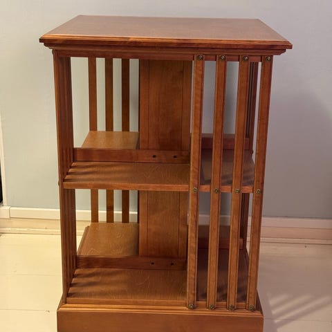 Käyttämättömäksi jäänyt Boknäs valkoinen karusellihylly.