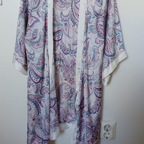 Vain käyttöönottopesty Lindexin aamutakki/kimono. Pääväri on kaunis vaalea persikka/aprikoosi.