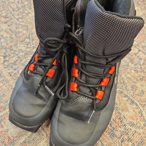 Tecnopro junior hiihtomonot musta ja keltainen väri. Sisäpohjan pituus on noin 25,5 cm (38 2/3).