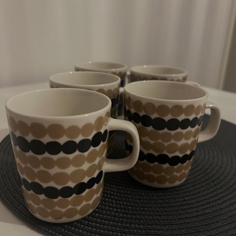 Marimekko kulhot beige-musta. Hyvässä kunnossa 🖤 4kpl, myydään settinä!