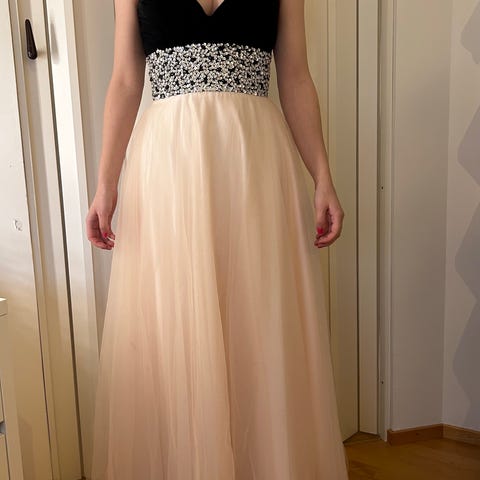 Myydään vanhojentanssimekko. Kerran ollut käytössä. Noin S-kokoisella käytössä ollut. Ei sisällä vannehametta.
