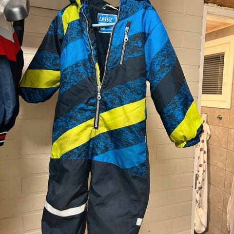 Haalarissa on käytön jälkeä, mutta käyttöikää vielä jäljellä. Ainoastaan lenkit, jotka laitetaan kengän alle, ovat hajonneet. Tietääkseni olemme haalarin toinen käyttäjä.