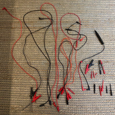 Testijohdot yleismittariin + krokotiililiittimet. Täysin eristetyt punaiset ja mustat johdot. Sis. mittapiikit kosketussuojilla. Maksimivirta 10A.