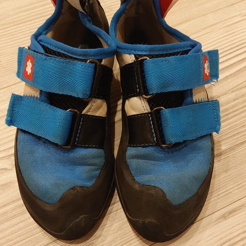 Myydään kiipeilykengät. Kengät muuten hyvässä kunnossa, mutta pinnassa pölyä, jota en ole koittanut putsata. Pohjat ehjät ja tarrakiinnitys toimii kuten kuuluu.