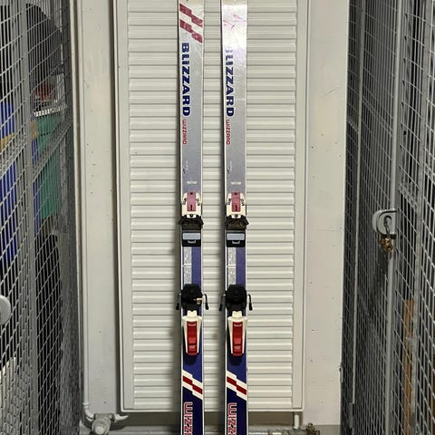Kneissel laskettelusukset, pituus noin 180 cm. Sukset ovat malliltaan perinteiset ja melko suorat – sopivat hyvin vanhemman tyylin lasketteluun tai retrohenkiseen käyttöön.
