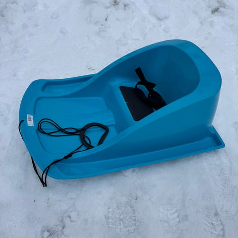 Puna-musta vauvapulkka vyöllä ja muovisoljella.