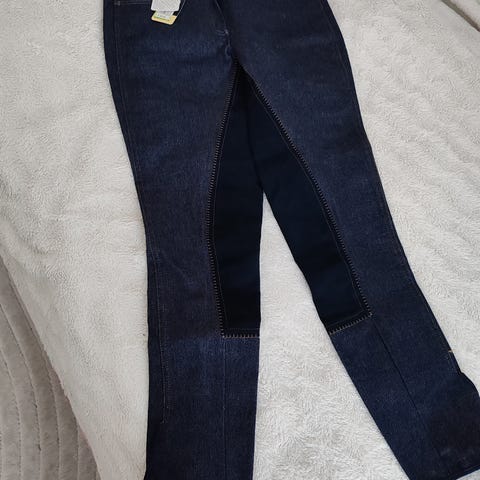 Ruskeat nahkapaikkaiset ratsastushousut. Toisessa lahkeessa pieni repeämä.