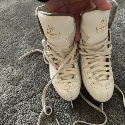 Jackson Excel lasten luistimet koko 33, väri valkoinen. Luisteltu luistelukoulussa sisällä hallissa. Ostettu uutena keväällä 2025.