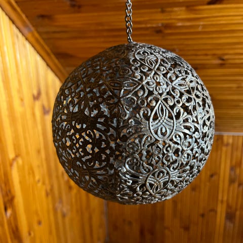 Pyöreä valaisinvarjostin, beige, kierrekuvioinen muotoilu. Sopii yleiskäyttöön erilaisiin valaisimiin.