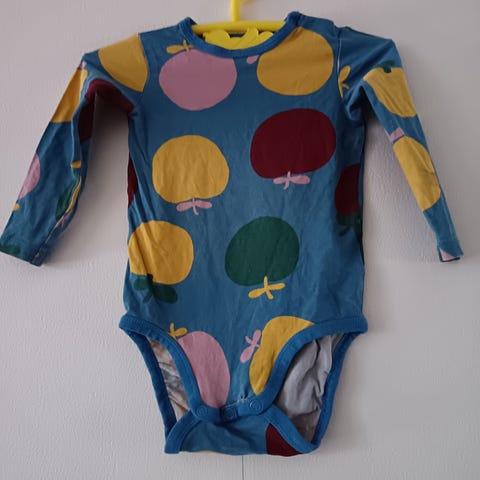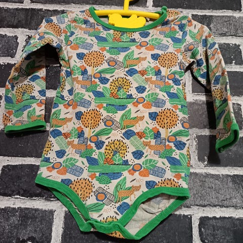 Ihana body, olkapäässä takana tahraa kauluksessa tummumaa ja sen alapuolella huomaamatonta värikulumaa tahranpoistosta, bodyosassa tummempaa tahraa, ehjä ja nukaton. Väri alunperinkin tummahko. Reilua kokoa.