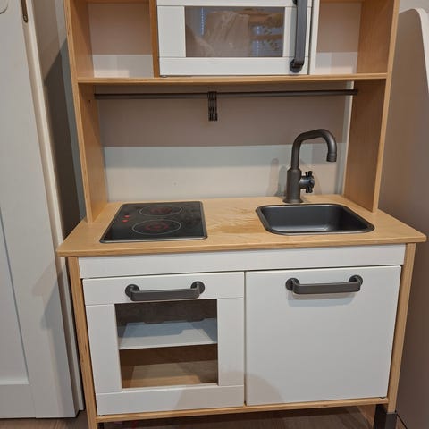 Kassakoneessa pieni rikama, ei haitaa leikkiä. Kassakoneessa äänet toimii.