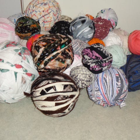 Myydään käsin puhtaista kierrätystekstiileistä leikattua matonkudetta. Yhdessä kassissa n. 4 kg.