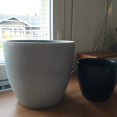 Hyväkuntoinen amppeli+ruukku. Ruukku noin 18 cm leveä ja 18 cm syvä. Korkeutta noin 80 cm, 100 cm jatkon kanssa. Vain nouto.
