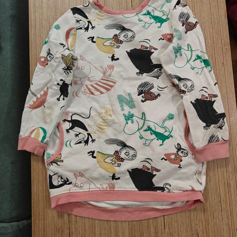 Ihana Huigee merkkinen muumitunika koko 104. Yhdellä lapsella ollut käytössä. Pesty hajusteettomasti. Ei lemmikkejä.