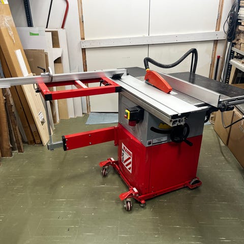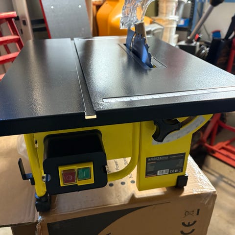 Toolmate pöytäsaha, joka toimii 230 V sähköllä. Soveltuu puun sahaamiseen ja tarjoaa tarkkuutta työskentelyyn.