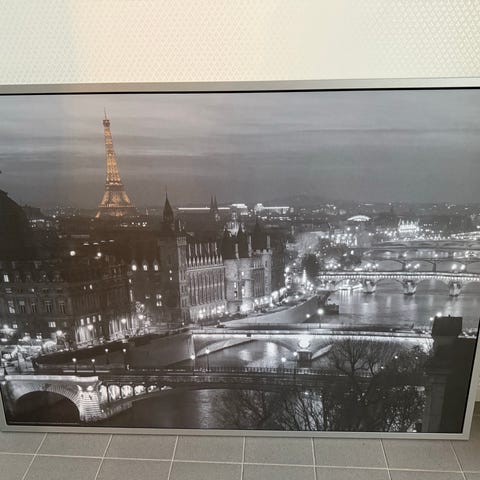 IKEA taulu, jossa on maisemakuva tien varrella. Väri seepia.