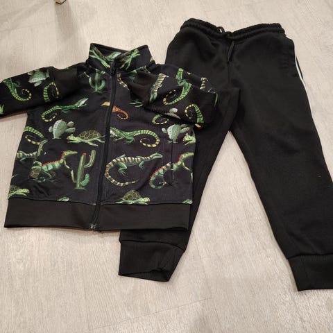 Hyväkuntoinen verkkaripuku. Hihansuissa vähän tummumaa.
