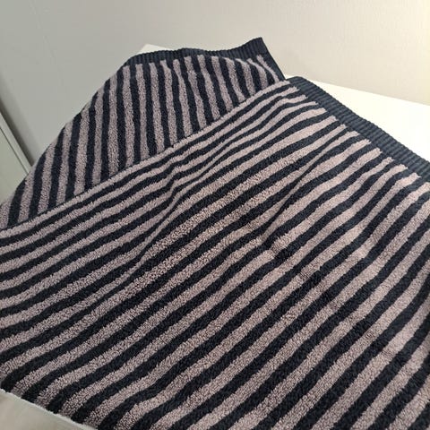 Käyttämätön (tehty vain käyttöönottopesu) Marimekon harmaa-valkoraidallinen pyyhe.