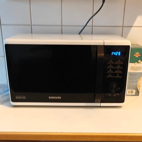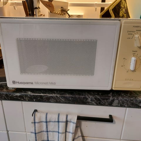 Husqvarna mikroaaltouuni valkoisella värillä. Laite sisältää peruskäyttöiset säätimet ajastukselle ja tehotasoille. Mikroaaltouuni soveltuu ruoan lämmitykseen ja sulatukseen.