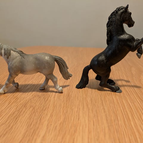 Rambon tallista tutut Schleich hahmot, Ratsastaja Elina ja Nikita hevonen. Erittäin hyvässä maalissa.