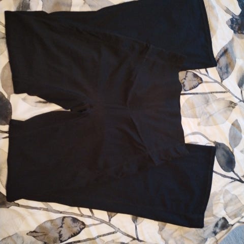 Laput ehitty poistaa, ei kertaakaan pidetyt. Mustat, ribbikangasta, sivutaskut, levenevät lahkeet. Superpehmeät. L-koko.