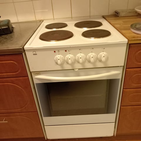 Käytetty peruskuntoinen Ahma liesi valurautalevyin, keveys 50cm