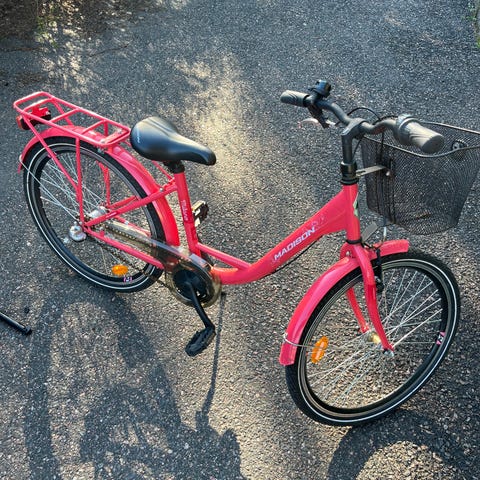 Tunturi Spin polkupyörä, 24”. Pyörässä on etukori jonka saa halutessaan mukaan. Korin saa myös irti. Kunto muuten hyvä, mutta pyörän kiinteä lukko rikki. Soittokello vaihdettu itse uuteen.
