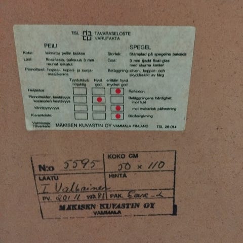 Retro kuvastin peili. Pientä jälkeä kulmassa ja peilissä muutama tumma piste. 70' luvun retroa. Alkuperäinen Mäkisen kuvastin.