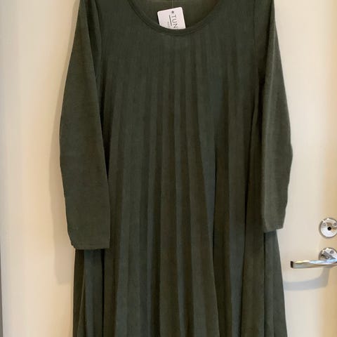 Syvän punainen voglian neulemekko helmassa rypytystä koko 36/38 antaa periksi pit.olkapäältä 82 cm ja lev.kainalo/kain.42 cm suoramalli hyvä.