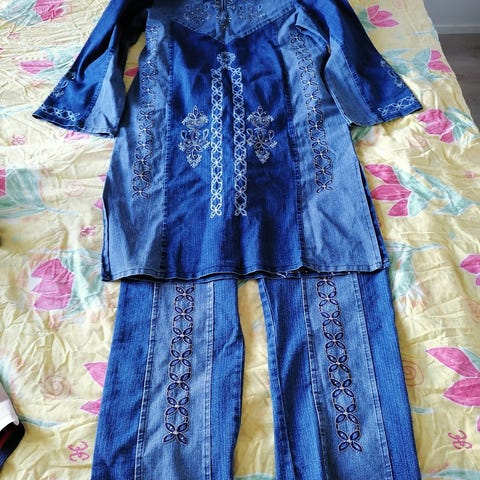 Musta-valkoiset seeprakuvioiset farkut. Miellyttävä ohut farkkukangas. Siisti kunto. Koko vastaa L.