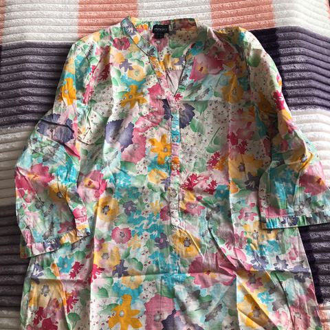 Puna-musta pusero erilaisella kaula-aukolla. Koko s/m materiaali polyesteria