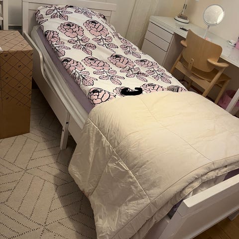 ANNETAAN useamman vuoden kasvavan lapsen käytössä ollut runkopatja. Kunto ulkoisesti oikein hyvä, mutta jouset kyllä selkeästi pehmenneet. Petauspatja ollut aina vuoteen päällä (saat halutessasi sen mukana, se selkeästi käytetty). Puiset jalat, jalkojen korkeus 20cm.