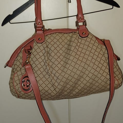 Myyn Guccin ison Sukey-laukun. Väreinä ruskea, musta ja beige. Harvinaista löytää näin hyvässä kunnossa.
