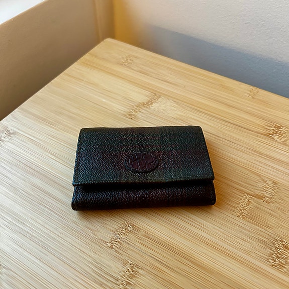 Mulberryn lompakko mustasta krokokuvioidusta nahasta. Sisäpuolella on kevyitä käytön jälkiä, jotka näkyvät kuvissa, mutta kokonaiskunto on siisti ja hyvin pidetty.