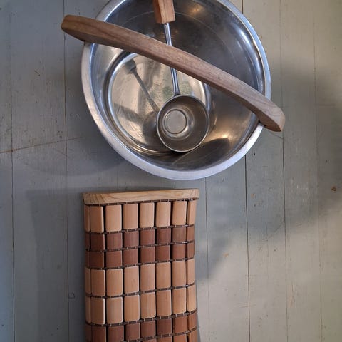 Myydään saunakiulu ja löylykauha, merkki Opa Finland.