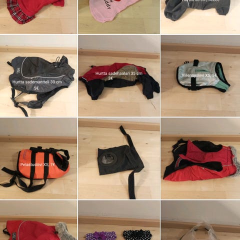 Erilaisia tarvikkeita pienelle koiralle