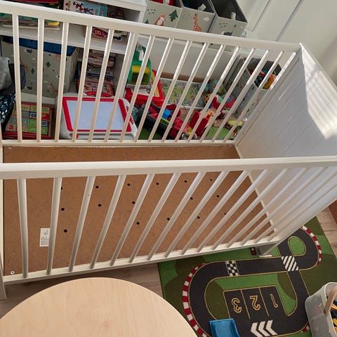 Annetaan levitettävä pinnasänky patjan kera. Tämä on vanha mutta maalattu ennen käyttöönottoa mustalla. Siisti yleisilme, patjan alta ei ole käsitelty. Ollut meillä käytössä