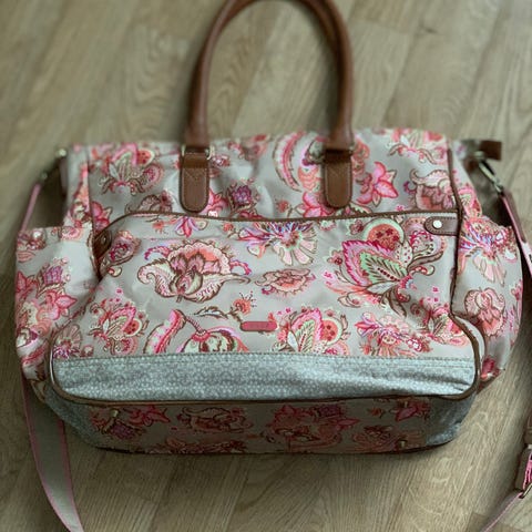 Tilava hoitolaukku, missä on paljon eri taskuja ja paikka vaikka tuttipullolle. Kerran käytetty, ei tullut tarpeelliseksi.