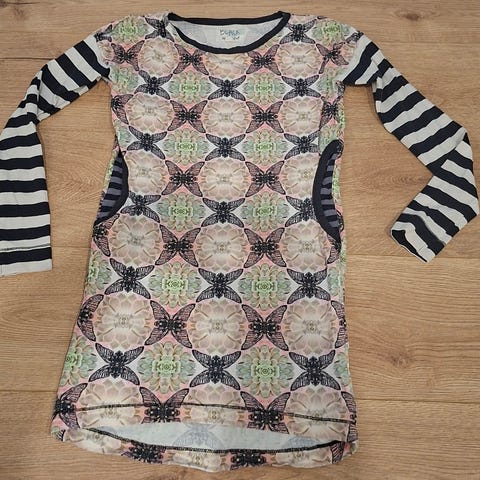 Myydään Me&I perhosmekko harmaa. Perhosen kuva selkäpuolella.