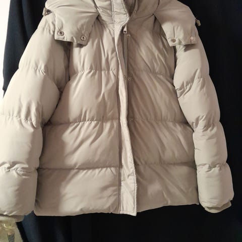 Sievä citytoppis / toppatakki vaaleanharmaa matta, näyttää luonnonmateriaalilta. Irrotettava huppu, vetoketjutaskut. Ei pidä vettä. Yksinkertainen ja helposti yhdisteltävissä erityisesti mustan kanssa. Citytakki, ei niinkään urheiluun siis.