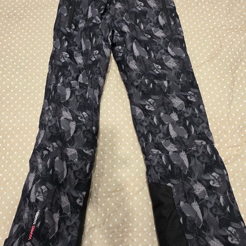 Vähän käytetyt, lähes uudet talvi-toppahousut tarpeettomina, olkaimilla ja vetoketjut taskuissa. Nouto.