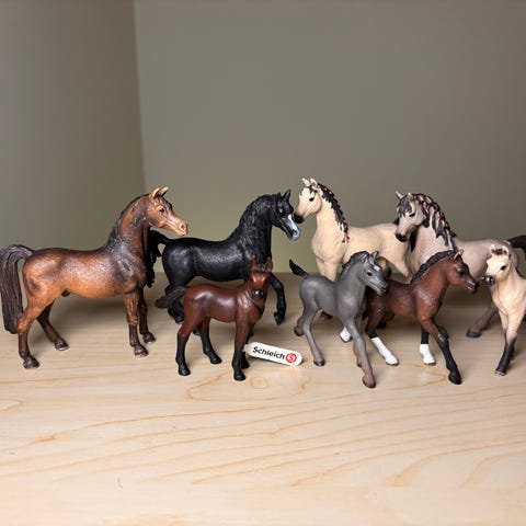 Enemmän ja vähemmän leikityt hevoset myynnissä pakettina.