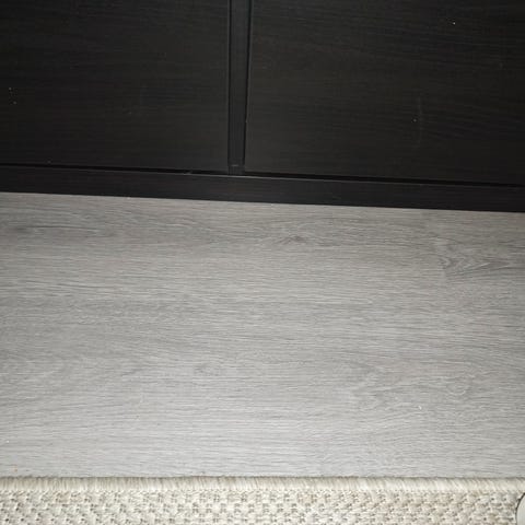 Avattu paketti Fenix Russel -vinyylilankkua. Paketista otettu yksi, eli jäljellä n. 2.29 m2.