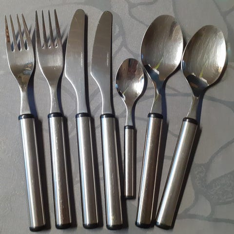 Hackman Elegia aterimet 4kpl. Haarukka 1kpl (20,4cm) ja veitsi 3kpl (21,5cm). Nouto, postitus, kulkeutuu Lappeenrantaan.