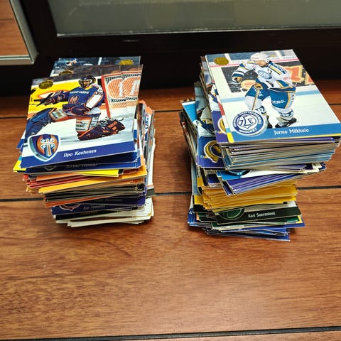 Myydään yli tuhat jääkiekkokorttia. Kaikki vanhempia sarjoja. Löytyy sm-liigaa ja änäriä. Kolmannessa kuvassa esimerkkejä korteista. Lisäksi vielä kaksi nimikirjoitusta.