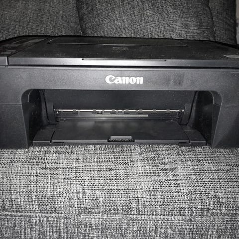 Myynnissä toimettomaksi jäänyt piuhan päässä tulostava Canon väritulostin/kopiokone.
