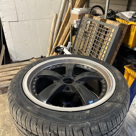 5x120 72.5 18 tuumaset Dotzin vanteet ”lippavannelookilla.” Renkaat kunnostettu ja ajettu yksi kesä, kunnostettu ja yhteen renkaaseen vaihdettu uusi kumi.