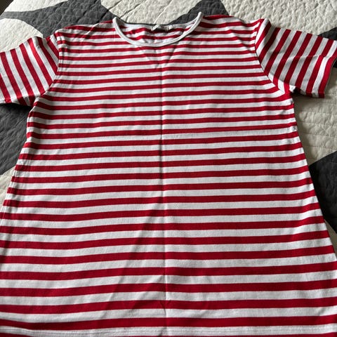 Marimekko T-paita, koko S, väriltään vihreä ja valkotaidallinen. Mittoja: pituus 60 cm , kainalo-kainalo 48.