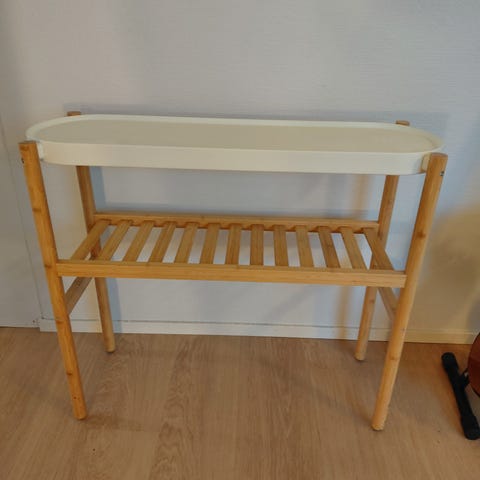 Myydään kaunis valkoinen Ikean sivupöytä. Edellisen ostajan itse kultaisella tuunaama.